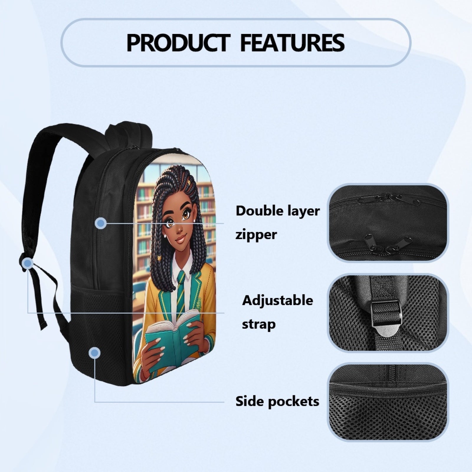 Just Be Hue backpacks are a fan favorite amongst students, parents, & educators because they serve as a daily reminder to strive for your dreams and goals and they are also crafted from high-quality & premium materials that ensure longevity and resilience. With a spacious main compartment, adjustable straps, and multiple pockets, it offers ample storage space for your essentials, including books, laptops, and tech gadgets. Students never have to worry about their backs hurting with our backpacks because its ergonomic design provides excellent back support and weight distribution, making it comfortable to wear even for extended periods. Whether you're a student, professional, or traveler, our backpacks are the perfect choice to keep you organized and motivated while on the go.